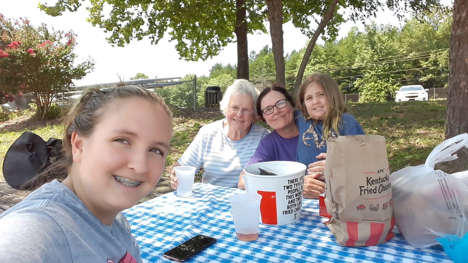 We picked up Ilene, went to KFC then took the food to Salem Lake Park for a picnic. The girls took one look at the lake and decided they didn't want to play in it! Can't say that I blame them!
